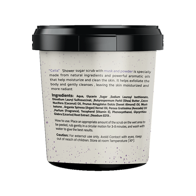 مقشر سكر رغوي للجسم بالمسك والباودر من سيليا لبشرة نظيفة وصحية