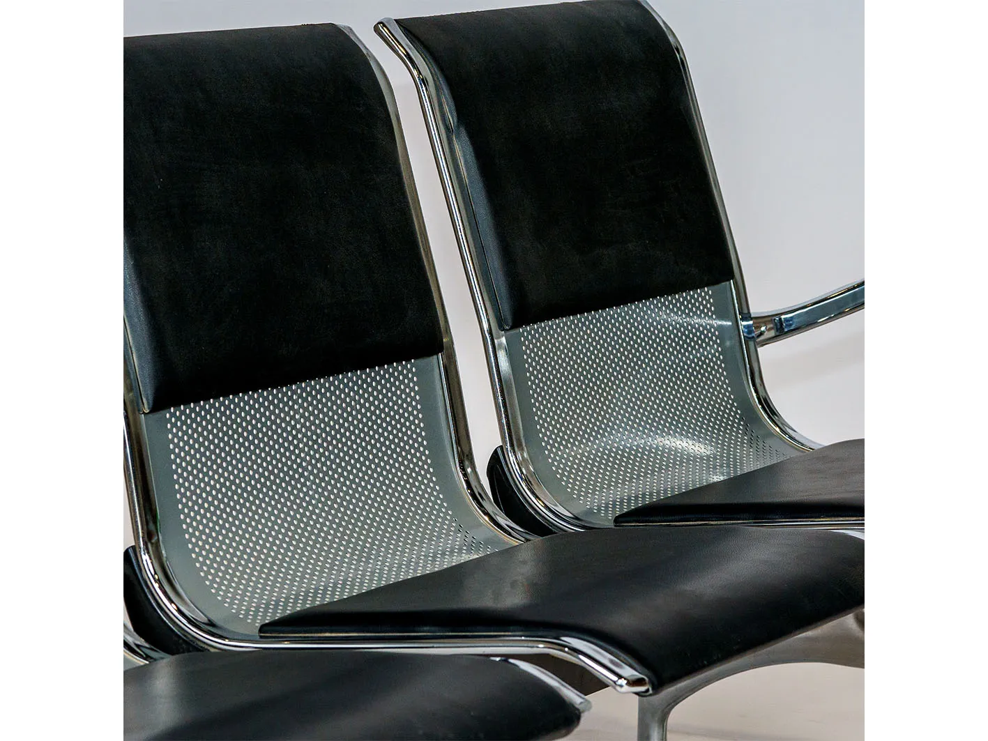 كرسي إنتظار جلد ثلاثي من مسار المشاريع المقعد و الظهرية عبارة عن قطعة واحدة مصنوعة من صفائح الحديد الصلب المخرم المقاوم للصدأ المصنوع بجلد صناعي عالي الجودة