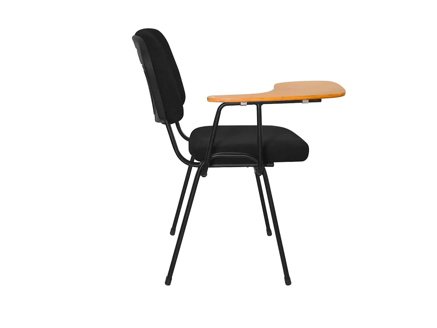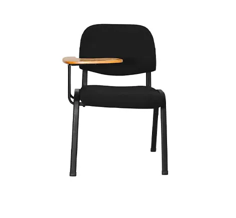 كرسي محاضرات من مسار المشاريع كرسي صمم بشكل يساعد علي قضاء اوقات المحاضرات بكل اريحيه دون تعب فهو يساعد على استقامه سليمة للظهر كما انه يحتوي علي مسند على الجانب الايمن من الخشب القوي متحركة تساعدك على الكتابة بسهولة وكذلك يحتوي على اداة تخزين من الخلف كل هذا بالاضافة الى تصميمه الفريد باللون الاسود .