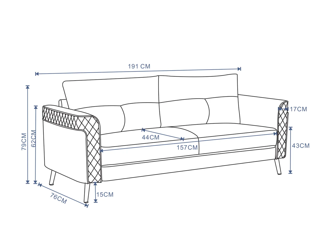 - الحجم : مقاس الارتفاع 79 سم , العمق 76 سم , الطول 191 سم