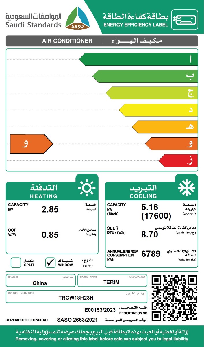 مكيف تيرم شباك 17600 حار بارد TRGW18H23N